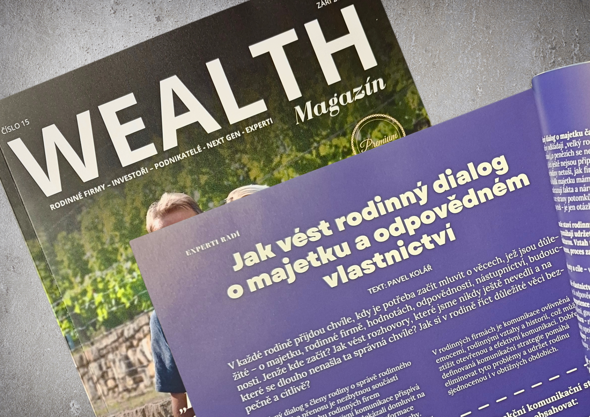 O rodinném majetku se často nemluví a když už, tak až příliš pozdě. Přitom právě otevřený a strukturovaný dialog o majetku, hodnotách a odpovědnosti je klíčem k tomu, aby rodina zůstala soudržná a majetek udržitelný i v dalších generacích. Ve svém článku pro aktuální číslo Wealth Magazín se zamýšlím nad tím, proč rodinné rozhovory selhávají, jakou...
