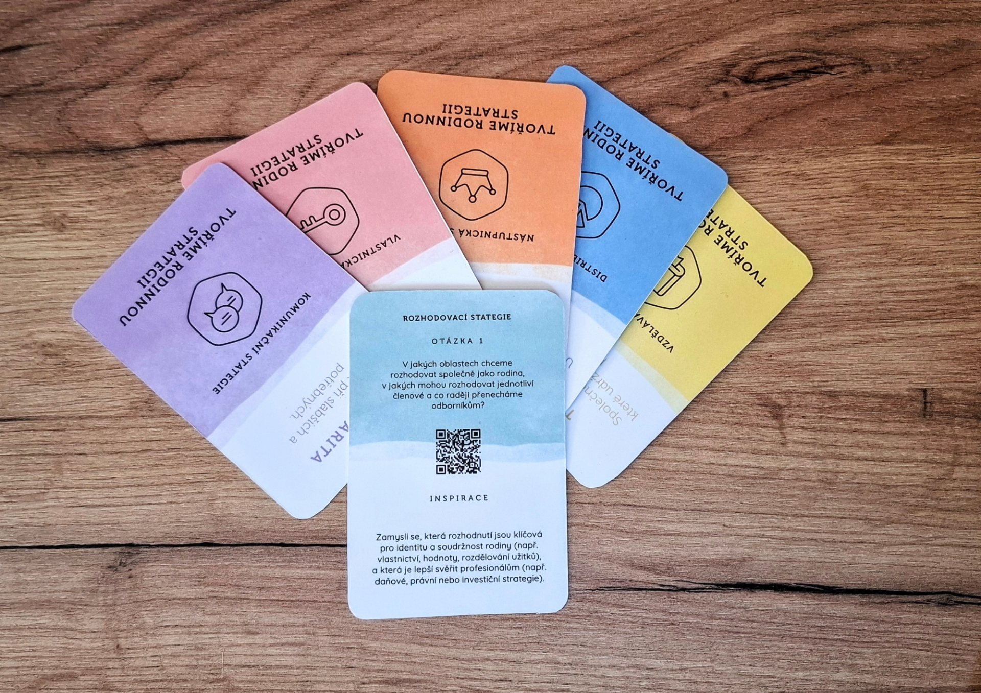 Zábavnou a citlivou formou otevírá témata, o kterých se často mlčí, a přitom jsou pro rodinu zásadní. Provede vás tím nejcennějším – hlubokým poznáním vlastní rodiny, tvorbou její rodinné strategie a uzavření dohod v 6 klíčových oblastech - vlastnictví, rozhodování, distribuce, vzdělávání, komunikace, nástupnictví. Karty fungují jako most mezi zábavou a seriózní strategií: začíná se hrou, ale končí se konkrétními výstupy – hodnotami, poslání, strategií a rodinnou ústavou.