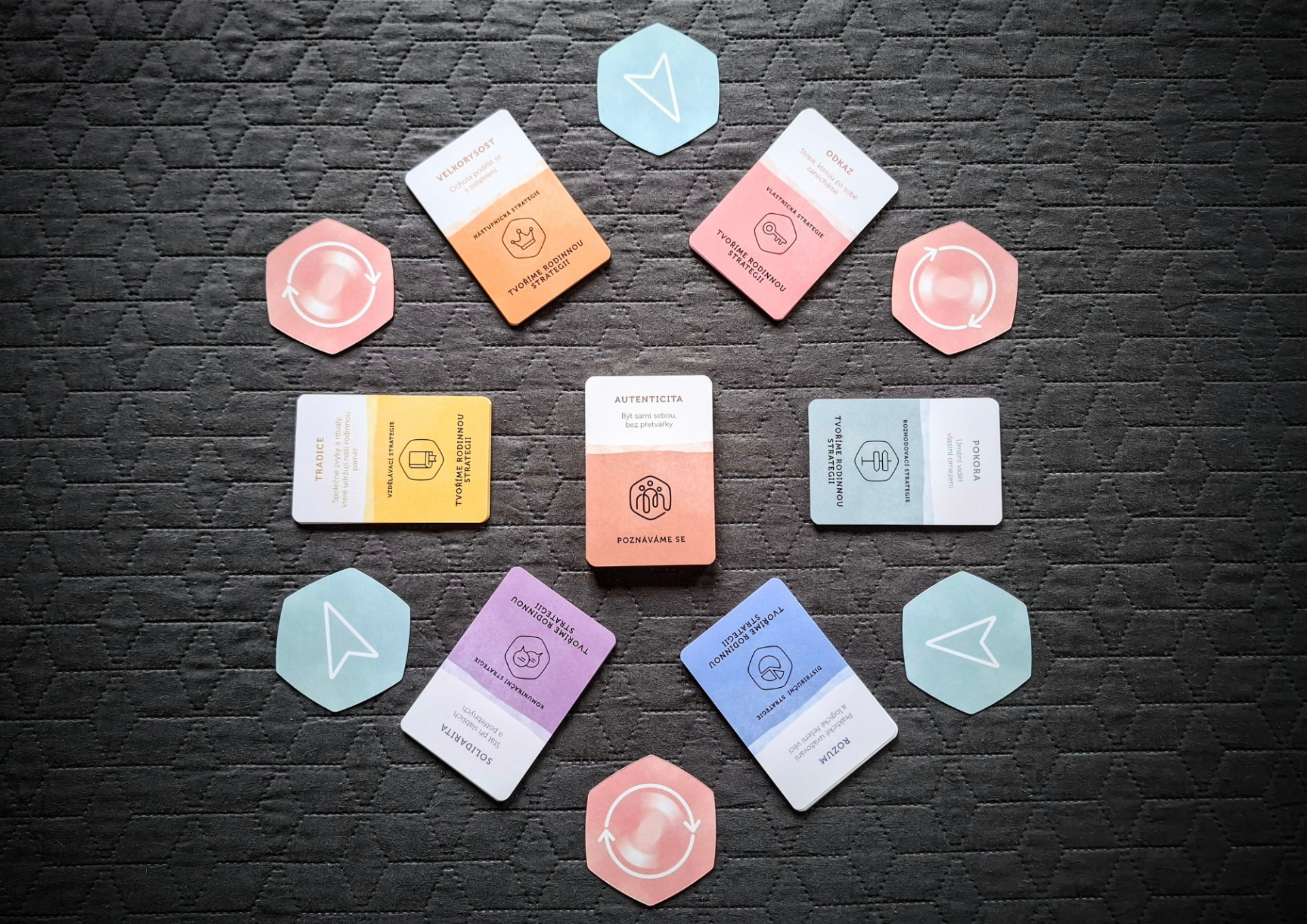 - Karty mají tři úrovně hry: Konverzační - poznáváme se, Reflexní - objevujeme hodnoty a poslání, Tvůrčí - tvoříme rodinnou strategii.